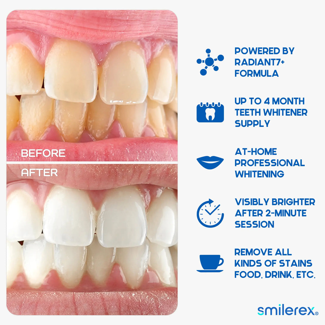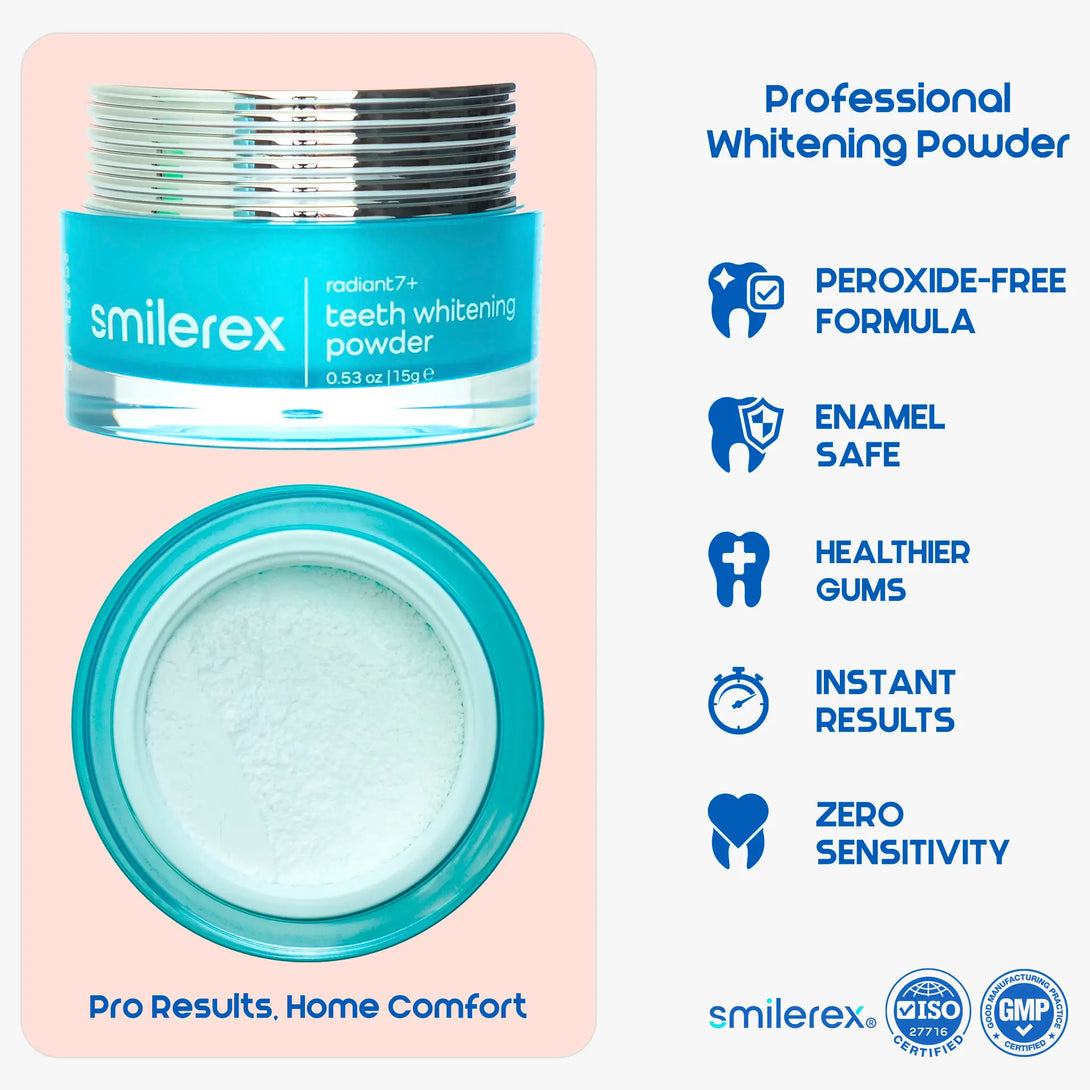 Enjoy a brighter smile without the hassle. Our Rdiant 7+™ Teeth Whitening Powder is quick to apply, gentle on enamel, and delivers noticeable results in just a few uses. Simply brush as normal—no trays, strips, or sensitivity. Fast, effective, and easy enough to fit into your daily routine.